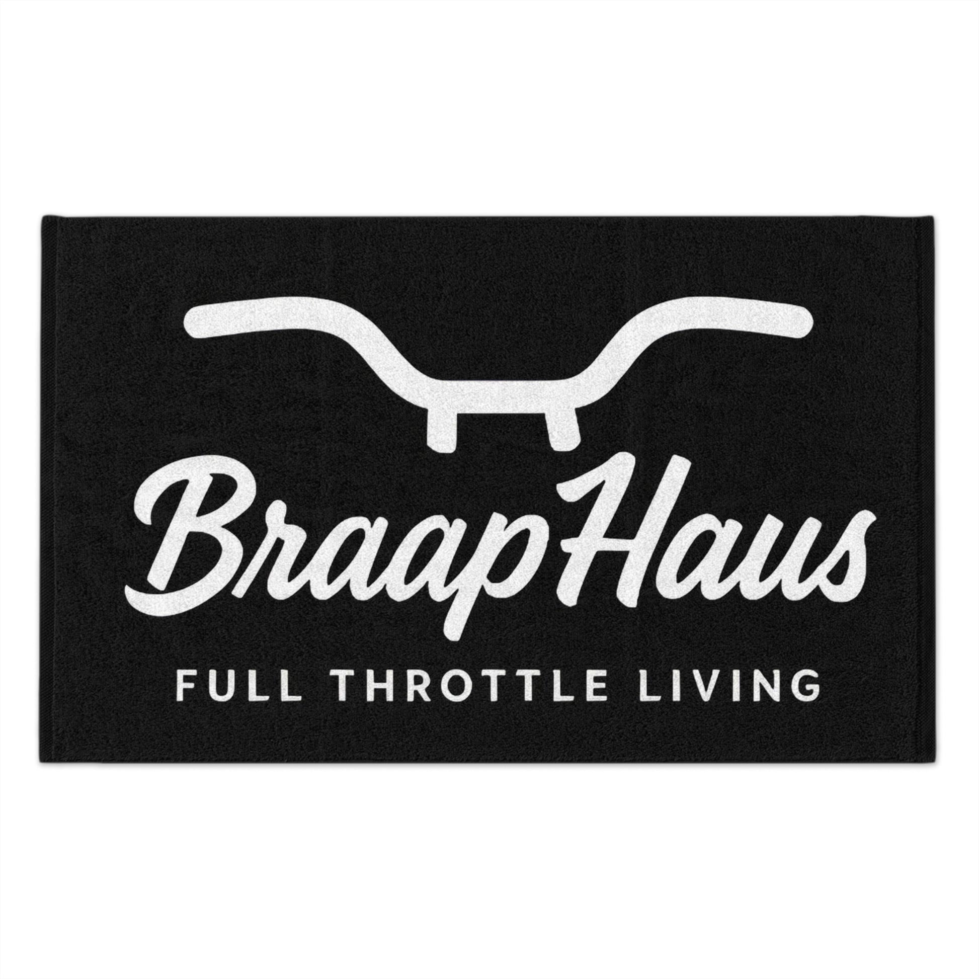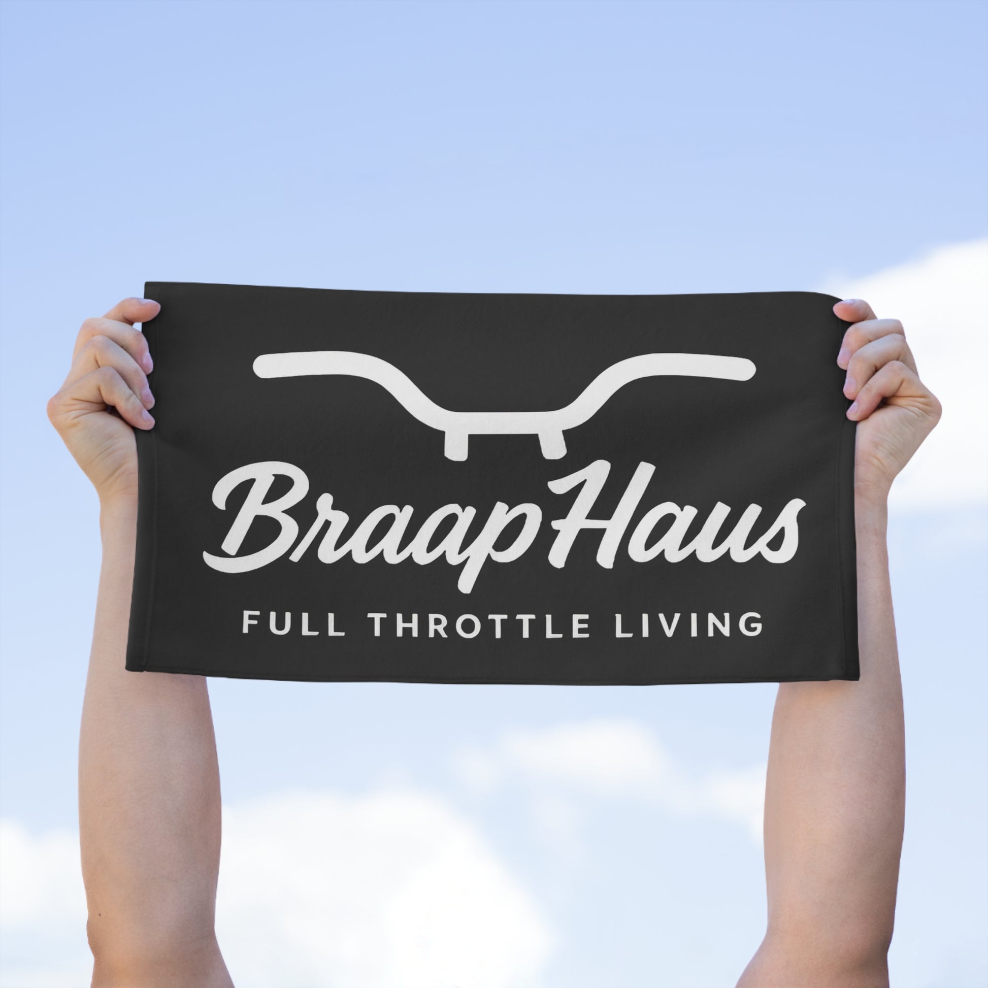 BraapHaus rally towels combine softness, style, and versatility into one multipurpose towel. Missed the Holeshot? Wipe the roost from your hands, face, and gear between motos. Stay clean, Stay fast. One side features highly absorbent cotton fabric while the other is made with soft, printed mink polyester.